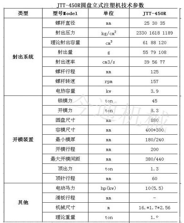 7、本款产品为45吨圆盘机,射出量:1-115g,锁模力:45T