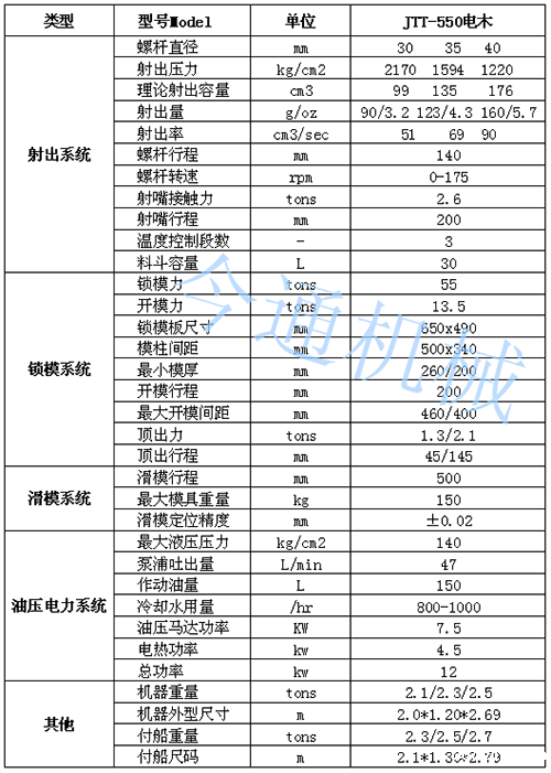e.本款机器为55吨立式机,射出量: 1-353g,锁模力:55-120T
