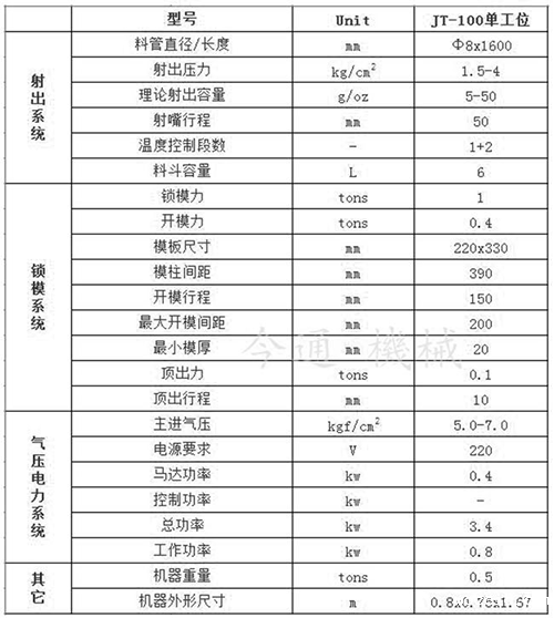 f.本款机器射出量:1-500g,锁模力:1-5T