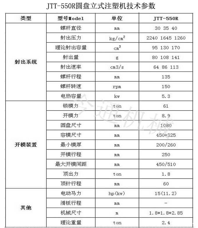1、本款机器为今通JTT-550R华体会真人平台,采用立式锁模、立式注塑机、圆盘多站位设计、圆盘锁模设计可放置多副模具,提高生产效率。