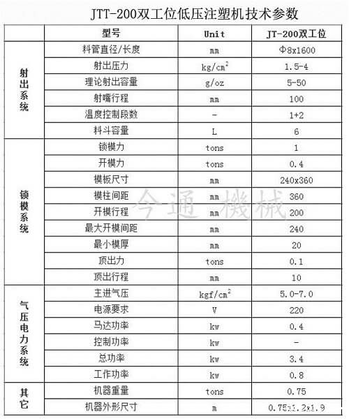 c、机台采用五段式温控,加热胶管二个,注胶头二个,胶缸一个。