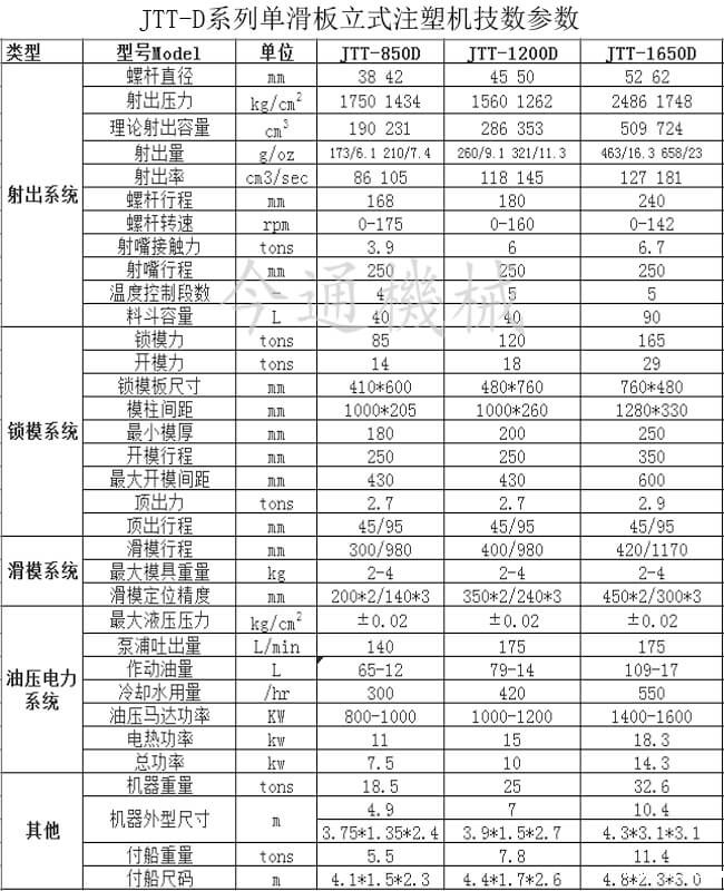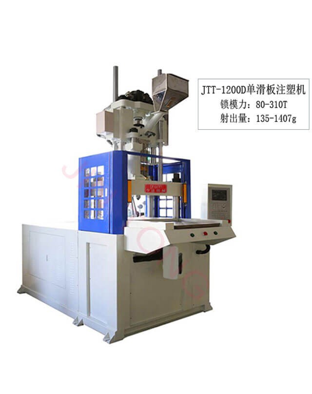 1、本款机器为今通JTT-1200D单滑立式注塑机,采用立式锁模、立式注塑机、滑板多站位设计、滑板锁模设计可放置多副模具,提高生产效率。