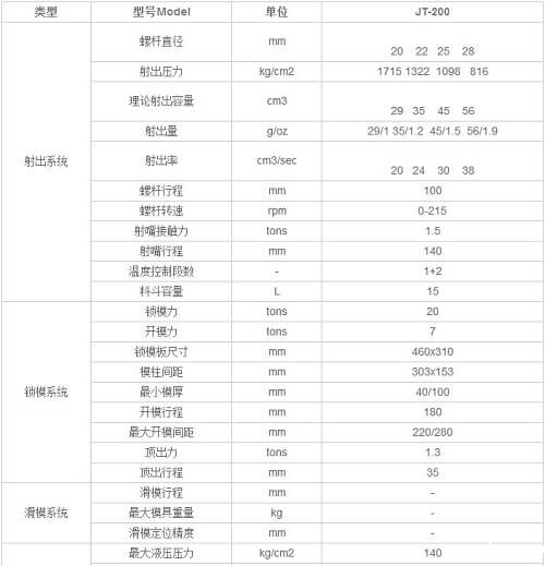 本产品为20吨的标准机,锁模力:20T,射出量:1-59g